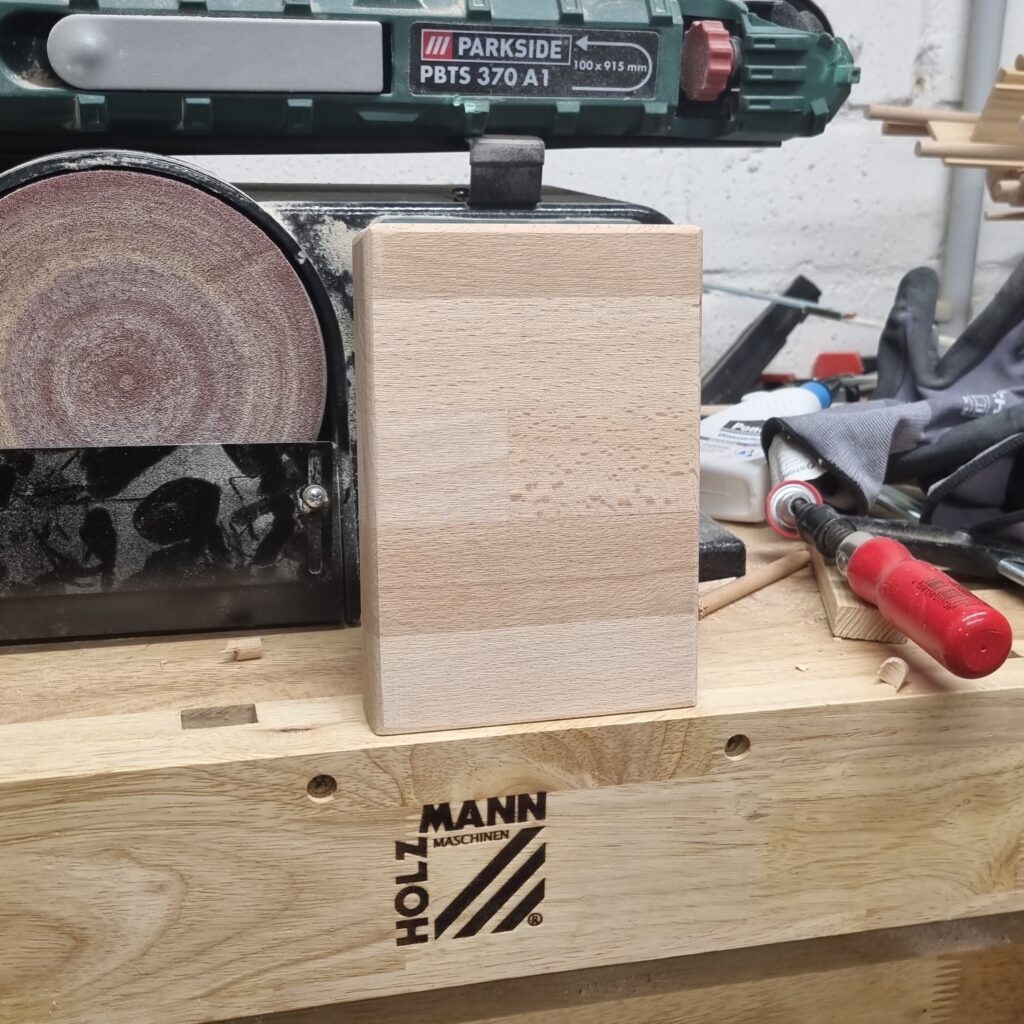 Vor einiger Zeit konnte ich im Baumarkt ein Reststück Buche Arbeitsplatte ergattern, welches sonst im Müll gelandet wäre. Nichts Besonderes, vielleicht 60cm mal 25cm groß.